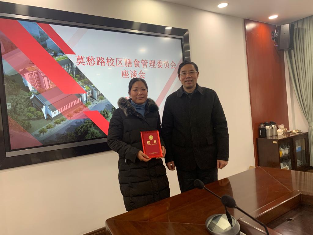 本次会议还举行了膳食管理委员会家长委员的聘请仪式,李明庚副校长为学生家长代表颁发了聘书,希望代表们积极参与到学校食堂管理工作中,集思广益,为学校管理好食堂餐饮工作出谋划策。