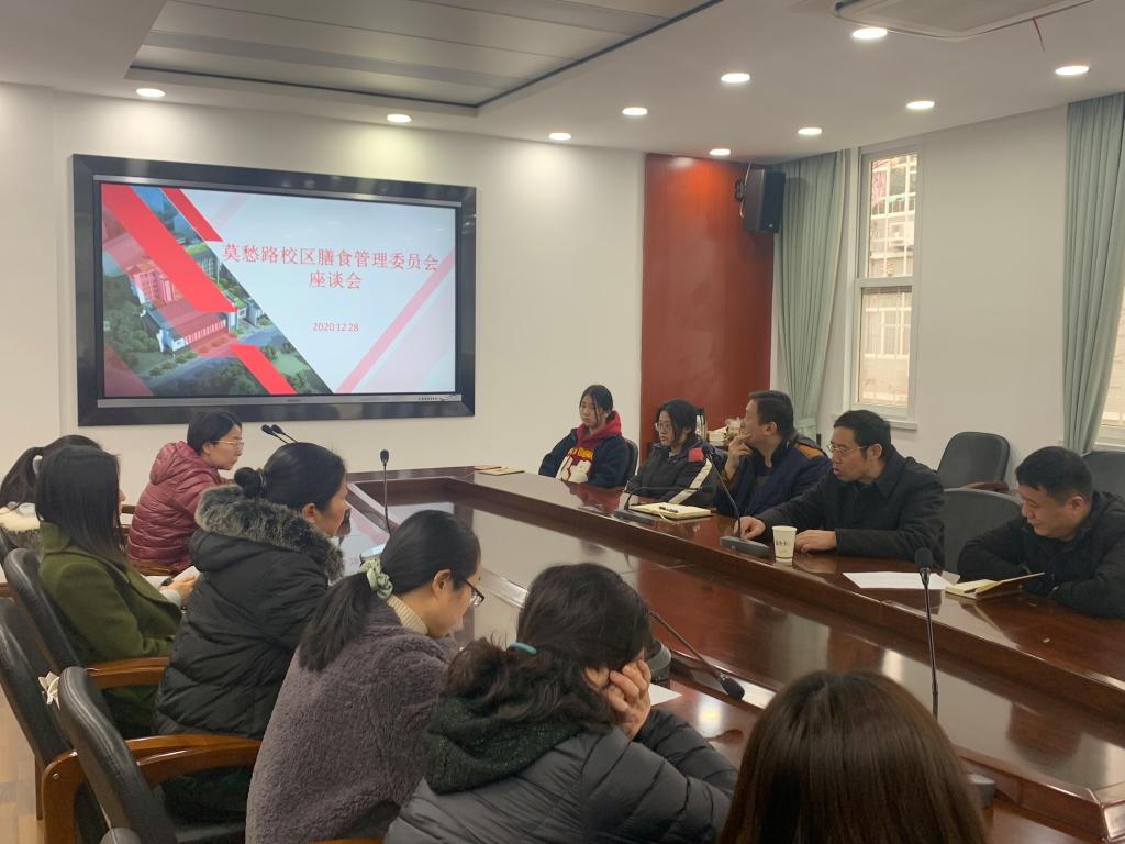为进一步服务好学生和教职工,充分发挥学校膳食管理委员会对食堂的监督指导作用,帮助学校办好师生都满意的食堂,2020年12月28日中午,我校在莫愁路校区大会议室召开了膳食管理委员会会议,同时举行了膳食管理委员会家长委员聘请仪式。学校李明庚副校长出席会议,后勤工作部张炎主任和各系部代表、食堂餐饮服务公司经理、家长及学生代表参加会议。