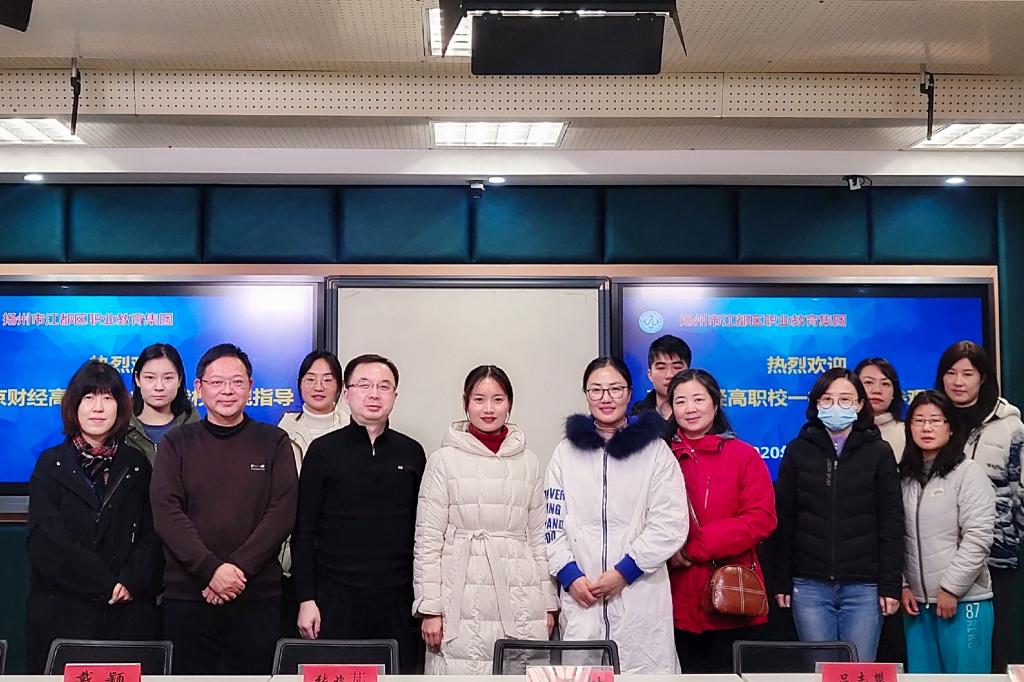12月25日下午,一行教师首先来到江都职业教育集团。张忠树副校长热情地接待了学校一行。之后,宿迁经贸高等职业技术学校的国赛选手程老师给选手们开展了一堂指导课,对教学大赛的评分标准与比赛模式进行了解读,同时对往年大赛的案例进行了分析和讲解。