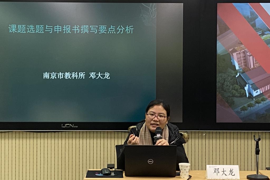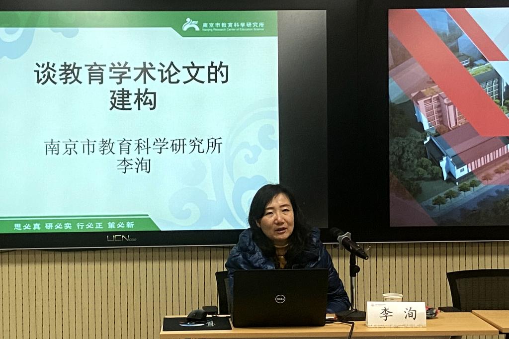 1月22日,研修班特邀南京市教科所课题规划研究室科研员邓大龙老师和教师发展研究室李洵主任分别做了讲座。邓大龙老师以《课题选题与申报书撰写要点分析》为题,从选题依据、课题名称、申报书注意事项三方面展开探讨。她以不同学科为例,讲解了课题如何选题以及课题申报的方法和途径。学员们边聆听边记录,真切地感受到提升科研能力的必要与紧迫。李洵主任以《谈教育学术论文的建构》为题,阐述了教育学术论文的定义、类型和基本要素。从学生学习、教师教学、课程性质等多维度分析了教育学术论文的写作方法,有理念、有实践,为学员们今后的论文写作指明了方向。