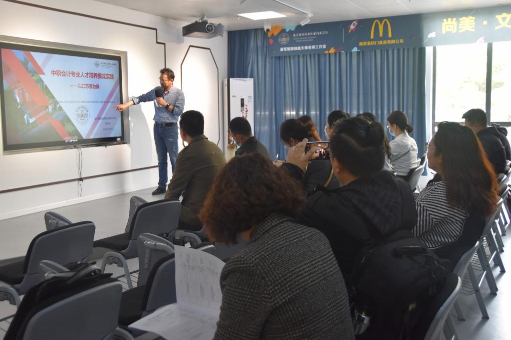随后,周主任在会议室开设了题为《中职会计专业人才培养模式实践》的讲座。讲座伊始,周主任对大连现代服务业职业教育集团校领导及老师的到来表示热烈的欢迎和感谢。紧接着,周主任就江苏省中职与高职学校的培养模式、学制体系进行了介绍,并对学校会计系具体的教师队伍和专业建设情况作了经验分享,周主任表示,学校一直看重教师的培养与提升,始终致力于建设优秀教师团队。