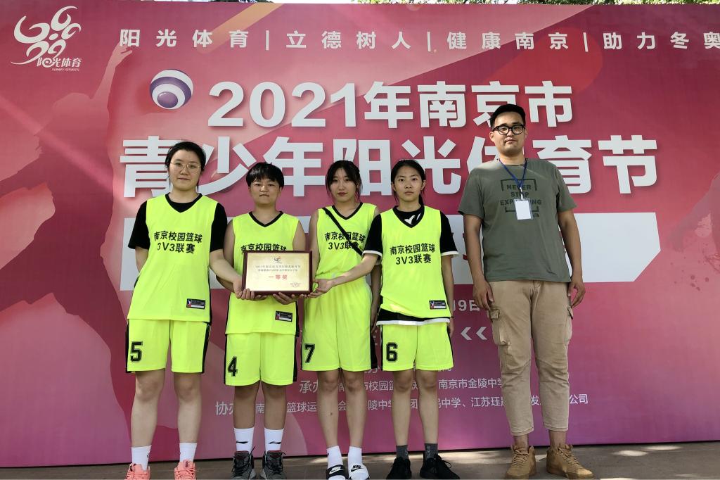 南京市青少年阳光体育节校园篮球3V3联赛于5月9日在金陵中学落下帷幕。本届校园篮球3V3联赛由南京市教育局主办,是南京市青少年阳光体育节校园系列活动之一,共有23所学校报名参加,是赛事举办以来报名队伍最多的一次。我校女篮队员在一天6场比赛后,勇夺一等奖的好成绩。