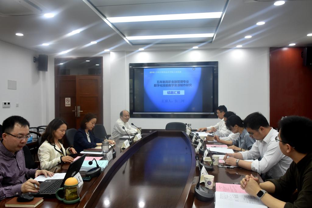 会议伊始,陈琴芳主任对专家的莅临表示欢迎。随后,2018江苏联合职业技术学院课题《五年制高职金融专业课程建设与互联网信息技术融合的深度研究》课题主持人张兆芃老师、2018江苏联合职业技术学院课题《五年制高职金融管理专业数字化技能教学资源制作研究》课题主持人张二网老师从课题的研究背景、研究目标、研究内容、研究方法、研究成果和研究展望向与会专家做了详细汇报。专家组肯定了两个课题选题有意义有价值,研究思路清晰,资源建设丰富,具备课题结题的基本条件,专家一致同意两个课题结题。
