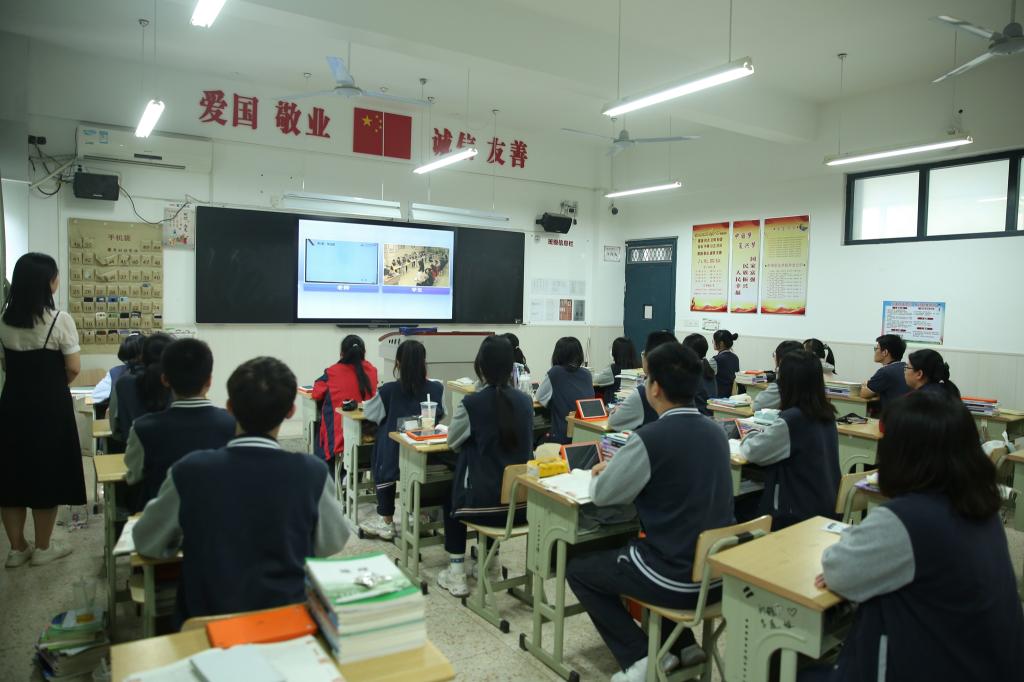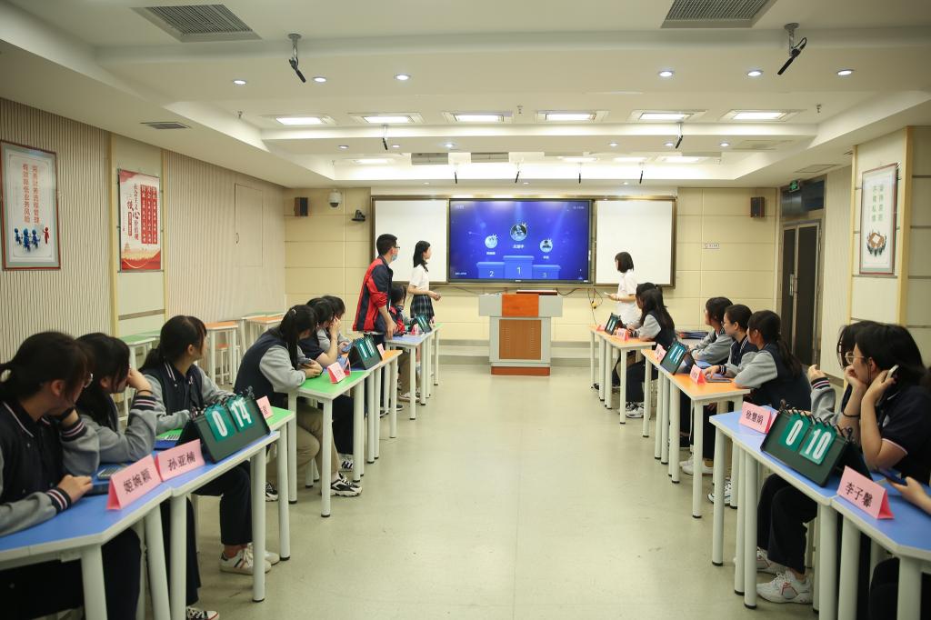 此次比赛采用了现场直播方式,让全体同学在教室看到了活动现场。班级观看的同学或是讨论题目,或是为自己班同学加油打气,特别是最后几道课外题的抢答,更是把气氛推到了高潮。