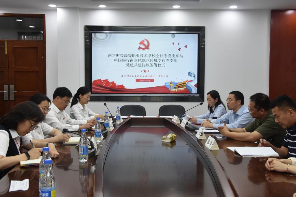 为积极探索实践新形势下基层党组织建设的新模式新规律,6月4日,我校会计系与中国银行凤凰花园城支行举行党建共建签约仪式。中国银行河西支行党总支副书记闵湘健、中国银行南京凤凰花园城支行党支部书记李丽等有关领导、我校会计系党支部书记钱云红、李明庚副校长、会计系全体党员同志出席签约仪式。