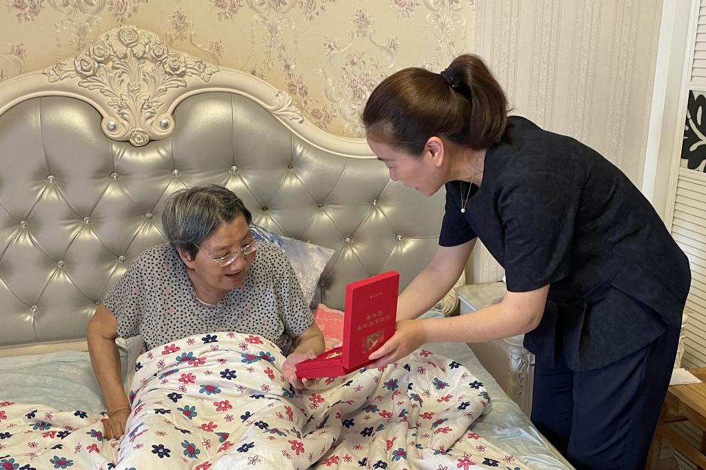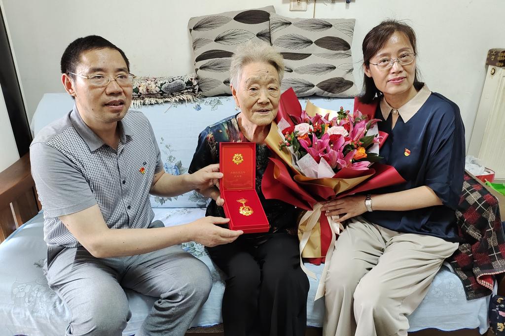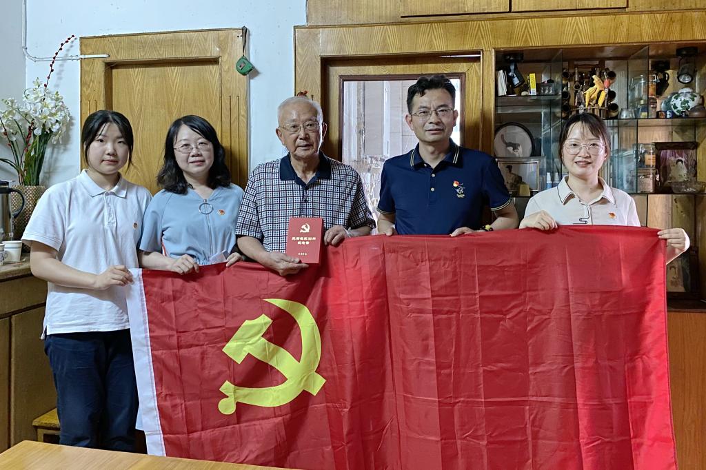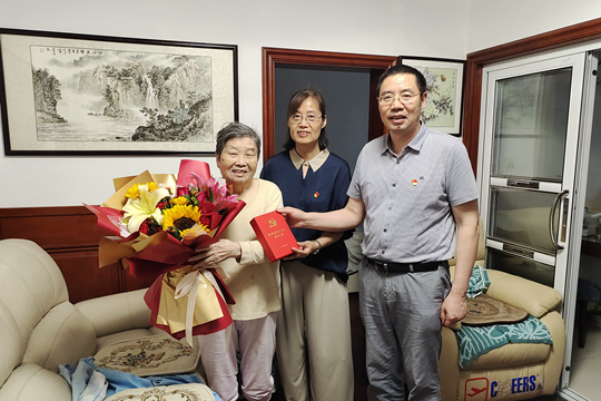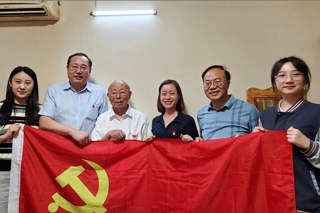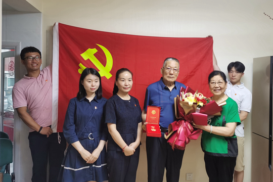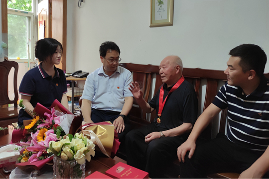 建党100周年之际,一枚纪念章,蕴含着不忘初心、牢记使命,勇攀高峰、永葆青春等含义,是荣耀、是肯定、是致敬、也是感谢。6月15日至18日,我校领导班子全体成员带领中层干部代表、骨干青年人才培训班学员、优秀学生代表,上门为13位老党员颁发“光荣在党50年”纪念章,传达党中央、学校领导班子对老党员的关怀和褒扬,表达对老党员们的崇高敬意。