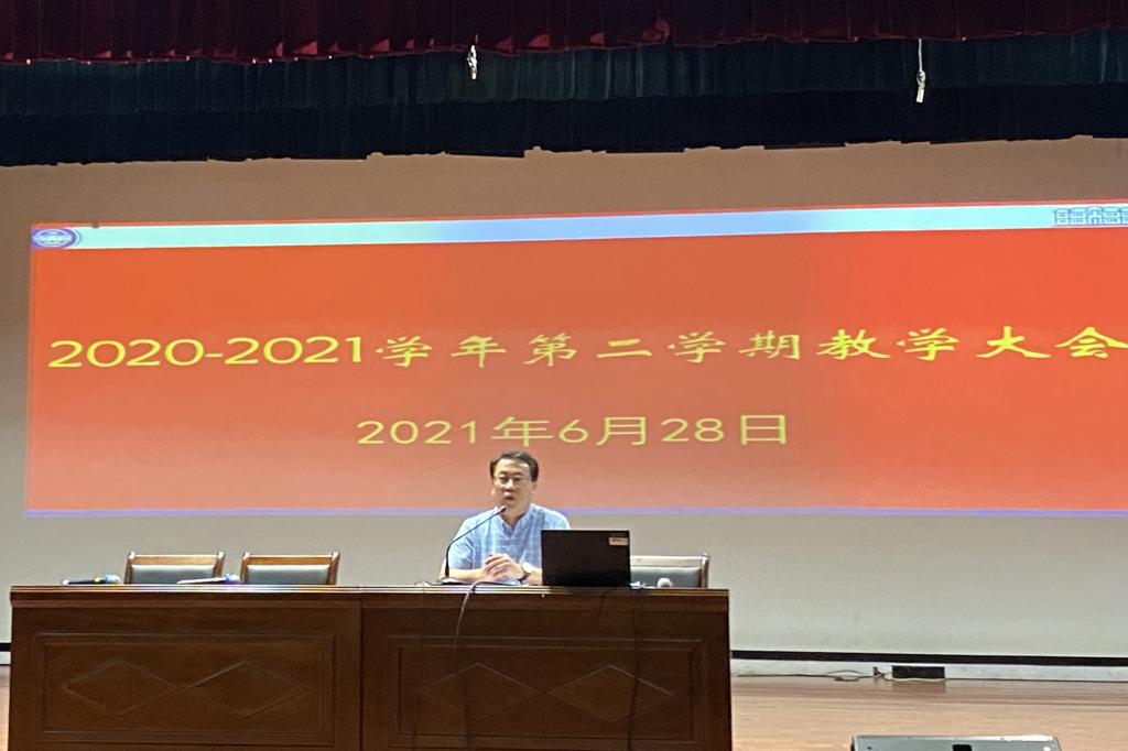 6月28日上午,我校在莫愁路校区举行了教学工作大会,学校全体教师参加,姚峰校长、崔琪书记、孙荣宝副校长、纪委书记朱辉、杨宇净副校长出席,会议由马原主任主持。