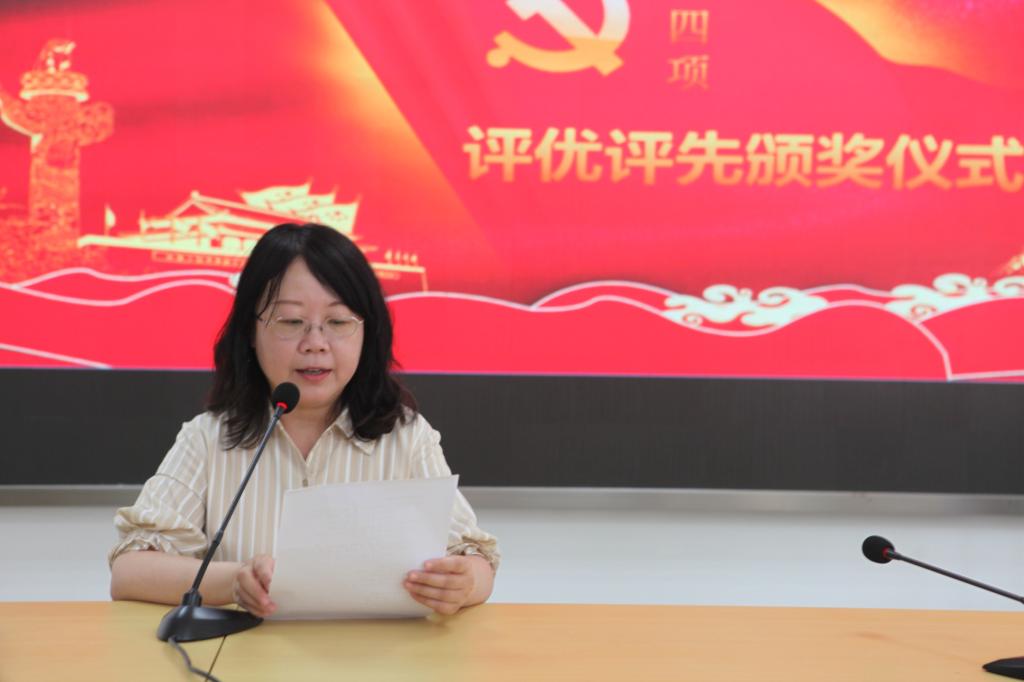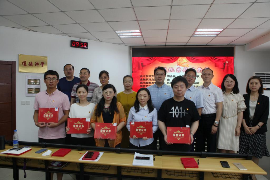 为扎实开展党史学习教育,充分展示新时代学校党委和共产党员的良好形象和精神风貌,发挥先进典型的示范引领作用,进一步统一思想、振奋人心、鼓舞士气,学校于“七一”前开展了“庆祝建党100周年‘两优一先’及党员‘三示范’先进典型评选工作”。大会公布了评选结果,校领导为获奖部门和个人颁发证书。现代服务系党支部被评为学校先进基层党组织,陈薇同志被评为学校优秀党务工作者,史青等20名同志被评为学校优秀共产党员,周会林等36名同志被评为学校党员示范课先进典型,冯成颖等6名同志被评为学校党员示范班先进典型,曹璟等10名同志被评为学校党员示范岗先进典型。