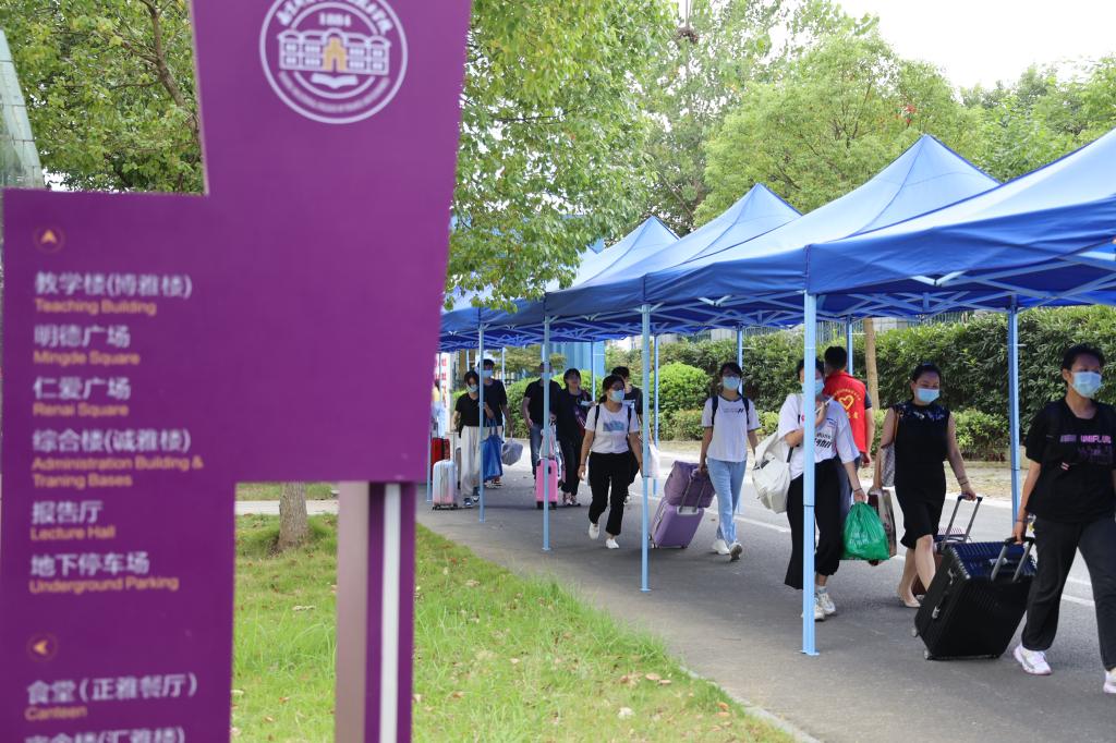 学校在校园内相对应的区域内设置了各系的报到处,新生和家长们仔细阅读了报到流程后,依次有序地排队、签到、领取校园一卡通,一切工作都秩序井然地进行着。宿舍楼内,宿管老师仔细核对学生信息,签发入宿用品。教室里,班主任老师们耐心地等待新生,收缴资料,指导填写登记信息。在南京药科大学地铁站的迎新点,校团委安排了志愿者在地铁站协助引导,志愿者们早早在此等候,热情地接过新生们的行李,送他们坐上开往学校的校车,“萌新们”开启了与学校的第一次见面!