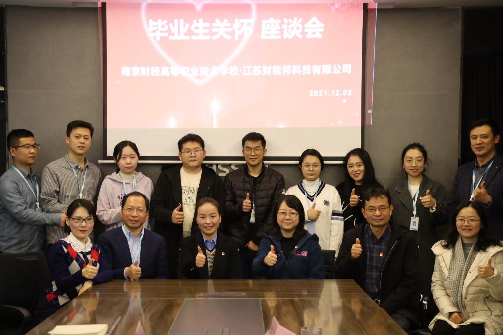 为进一步做好毕业生关怀服务工作,实地调研企业对毕业生的满意程度,切实了解企业的用人需求,助推校企合作项目的发展与完善,12月2日,我校党委书记崔琪,纪委书记朱辉,会计系主任周会林与会计教研室主任金兢,赴江苏财税邦科技有限公司进行调研。双方召开党建共建暨毕业生关怀座谈会。财税邦董事长毛友俊、总经理高霞、商务部总监杨青、学校会计系的毕业生代表出席本次座谈会。会议由高霞总经理主持。