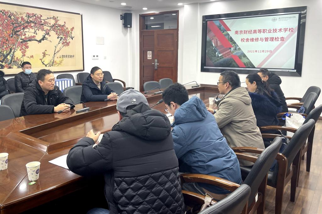 为了更好地适应中小学校舍修建与管理工作需要,进一步提高市直属学校校舍修建与校园管理水平,南京市教育局于近期开展了2021年度校舍维修与管理工作考核。12月29日下午,在学校李明庚副校长、后勤工作部张炎主任、万炜副主任的陪同下,由南京市教育局建设处、财务处、审计处和各直属学校后勤工作相关负责人组成的市教育局直属学校校舍维修与管理工作检查组来到学校莫愁路校区和夫子庙校区进行专项检查。检查组在会议室听取了本次校舍建设与管理的工作汇报。
