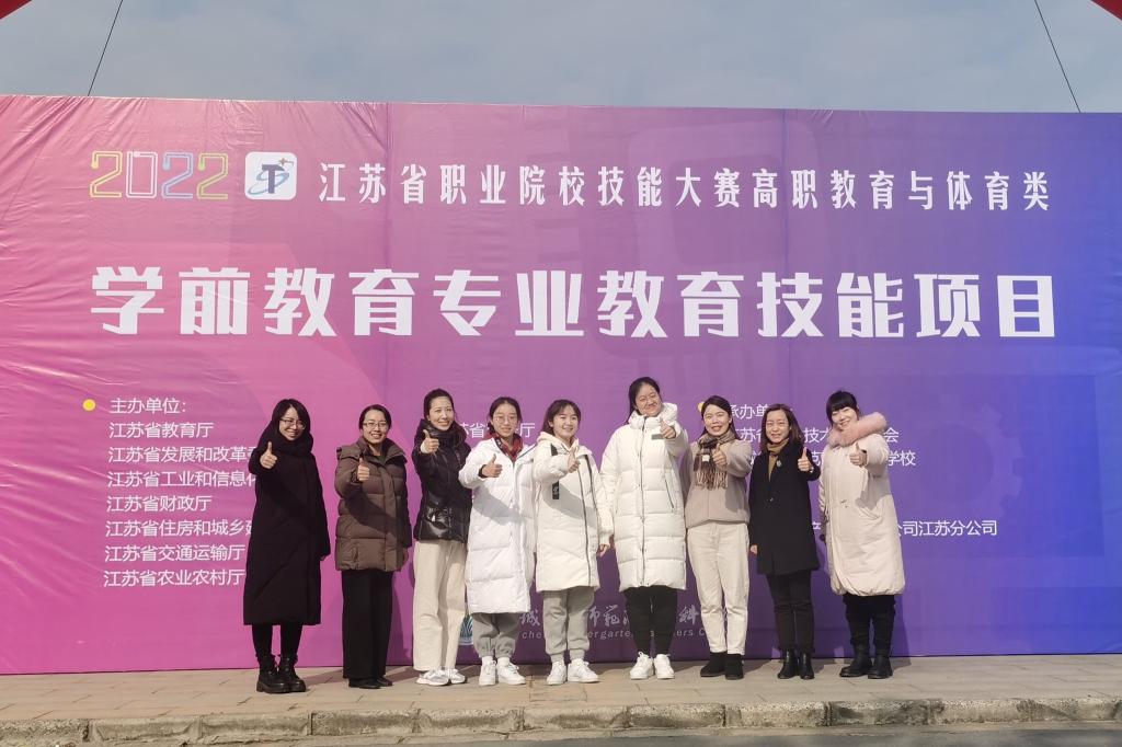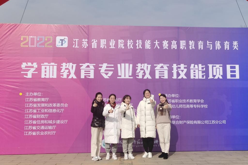 1月14至16日,我校现代服务系幼管专业学生赵睿思、杨欣然、余思琪在副校长杨宇净和现代服务系主任盛莲莲的带领下,赴盐城参加了2022年江苏省职业院校技能大赛高职教育与体育类学前教育专业教育技能项目的比赛,荣获一等奖第一名的优异成绩!