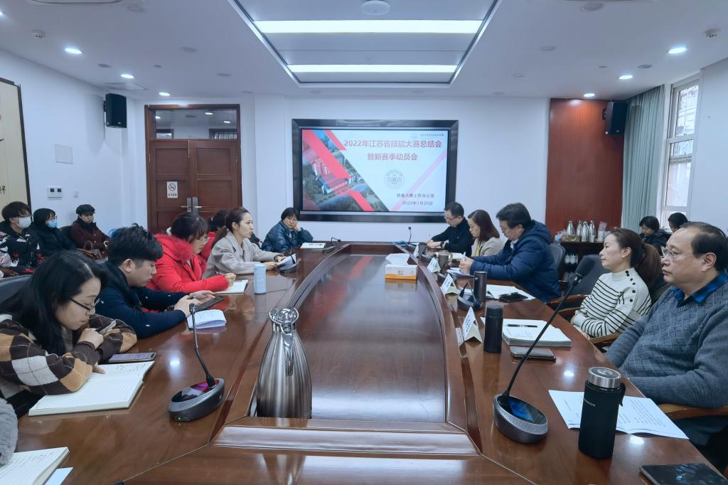 1月20日下午,我校在莫愁路校区大会议室召开2022年江苏省技能大赛工作总结会暨新赛季动员会。会议由教学工作部张兆芃副主任主持。学校姚峰校长、崔琪书记、杨宇净副校长、孙荣宝副校长及各系主任、相关教研室主任、指导教师和参赛教师出席了此次会议。