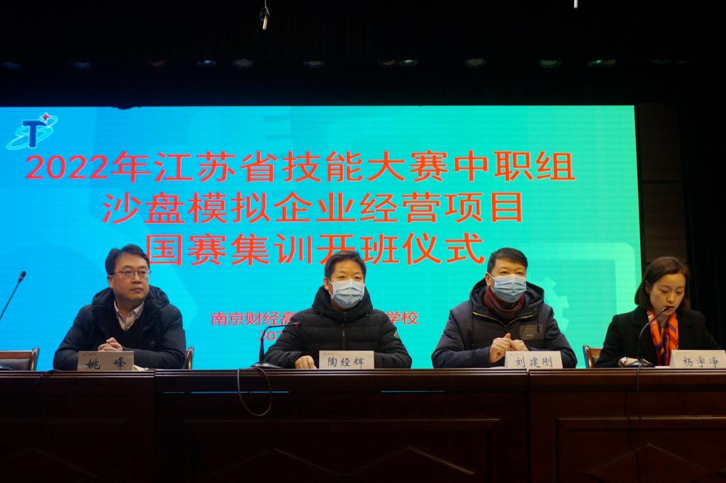 2月11日,2022年江苏省技能大赛中职组沙盘模拟企业经营项目国赛集训开班仪式在我校莫愁路校区顺利举行。集训专家组组长陶经辉,南京市教育局职社处副处长刘建刚,我校校长姚峰、副校长杨宇净,以及各集训选手和所在学校的领导参加了会议。会议由杨宇净副校长主持。