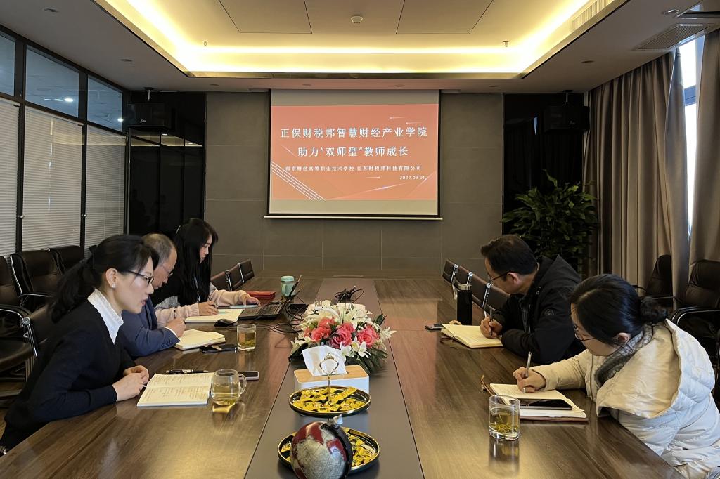 为推进正保财税邦智慧财经产业学院的后续建设,完善校企协同合作方案,3月1日,我校会计系主任周会林、会计教研室主任金兢赴江苏财税邦科技有限公司开展产业学院运营交流,与财税邦董事长毛友俊、总经理高霞、商务总监杨青展开了深度研讨。
