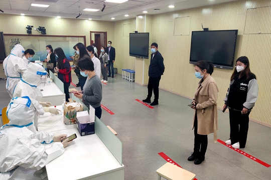 线下教学暂停后,针对留校的部分师生,后勤工作部在做好食堂供餐等基础服务保障的同时,严格执行每日晨午晚检及核酸检测工作,并做好记录与存档。细致全面的保障服务得到了南京市卫保所和秦淮区教育局相关领导的充分肯定。