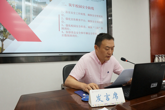 张炎副校长作为主讲发言,以《总体国家安全观学习纲要》根本,结合习近平总书记在庆祝中国共产主义青年团成立100周年大会上的重要讲话精神和《关于加快构建高校思想政治工作体系的意见》,从强化学校政治安全、加强国家安全教育、筑牢校园安全防线、健全安全责任体系等四个方面,就如何保障青年学生在政治、思想、生命、财产、身体、心理、环境等方面进行了全面地分析和总结,希望各部门能够明确责任,居安思危,协同发力,共同筑牢校园安全的防线和底线。