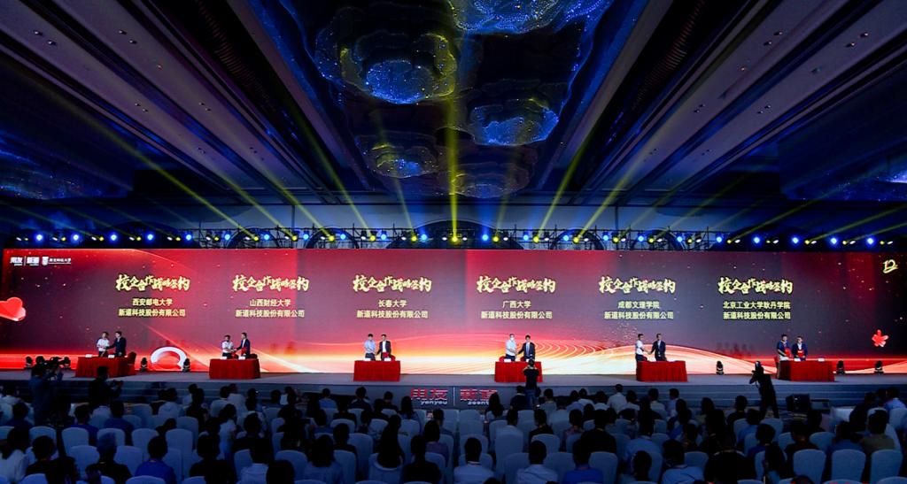 2022年8月13日,由用友&新道举办的“第十二届数智化人才培养产教融合发展大会”在广州市隆重召开,我校姚峰校长、孙荣宝副校长、张炎副校长及金融系相关老师应邀出席。由于学校在校企合作、产教融合等方面的突出成就,我校荣获“2022年校企合作金成果奖”,会议期间,为进一步深入推动校企协同育人、培养更高水平的金融数智化人才,学校与新道科技现场举行校企合作战略签约仪式。