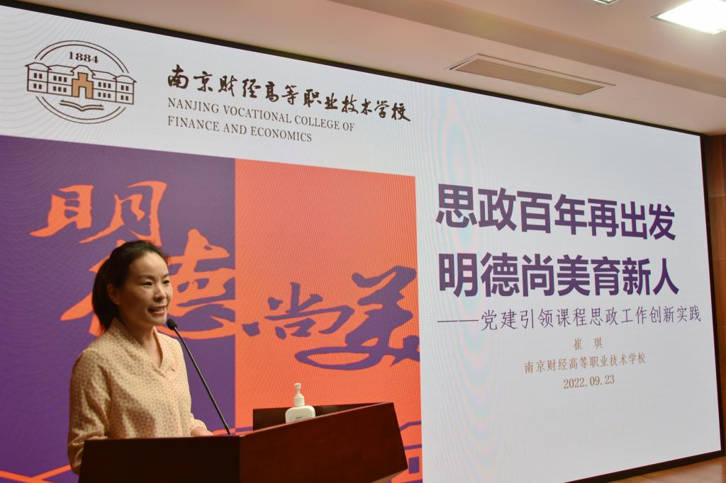 崔琪书记以《思政百年再出发,明德尚美育新人》为题,进行汇报。南京财经高职校发端于1884年,学校在两个百年的历史交汇点,把课程思政作为加强学生思想政治教育的重要举措和全面提升人才培养质量的有力抓手,通过党建引领,传承创生“明德尚美”育人体系,对课程思政工作进行系统设计;通过同向同行,构建“大思政”格局,凝聚起学校内外各方面的育人力量;通过打造“红匠思政”品牌,不断增强育人实效,努力将百年老校的爱国精神更好地传递在课堂上,为党和国家输送更多高素质、高技能的“大国工匠”。