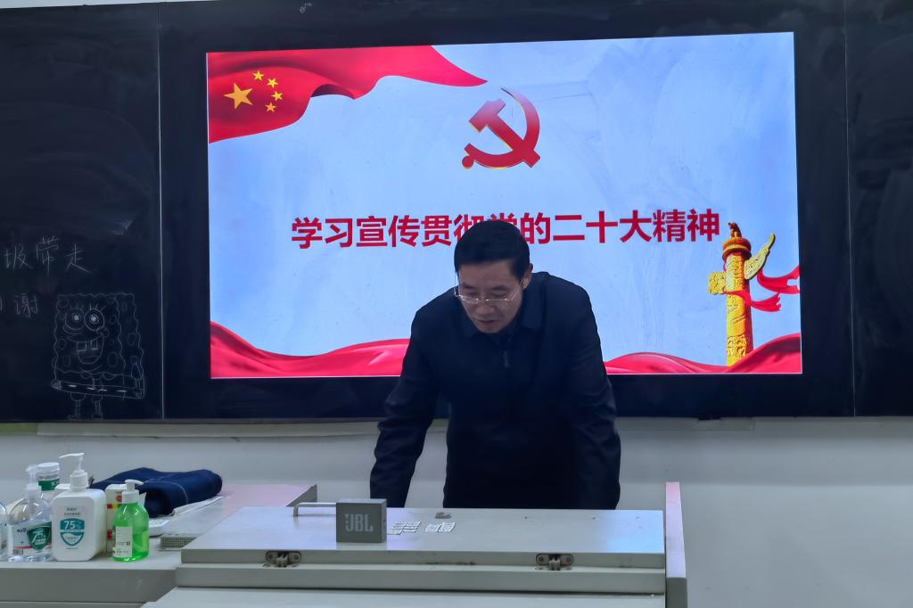 为带领广大党员进一步深入学习领悟党的二十大精神,11月18日,我校校长、书记深入各党支部为广大党员上了一堂关于党的二十大精神的专题党课,校长、书记带头读报告,说教育,谈体会,让广大党员听得懂,能领会,可落实。