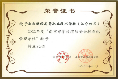 学校还被南京市公安局评为“2022年度内部安全保卫系统先进集体”,被南京市教育局和南京市消防救援支队评为“南京市学校消防安全标准化管理单位(江宁校区)”。