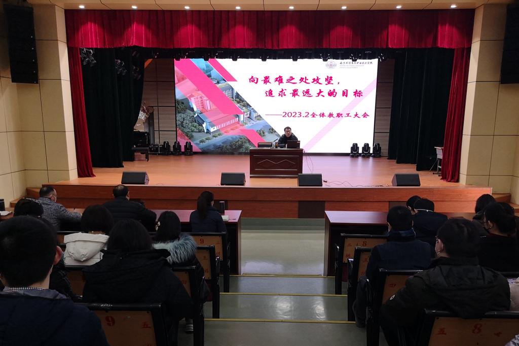 2月4日上午,我校在莫愁路校区召开新学期全校教职工大会。学校姚峰校长主持并讲话,总结过往,展望未来,对新学期相关工作进行了动员和部署。
