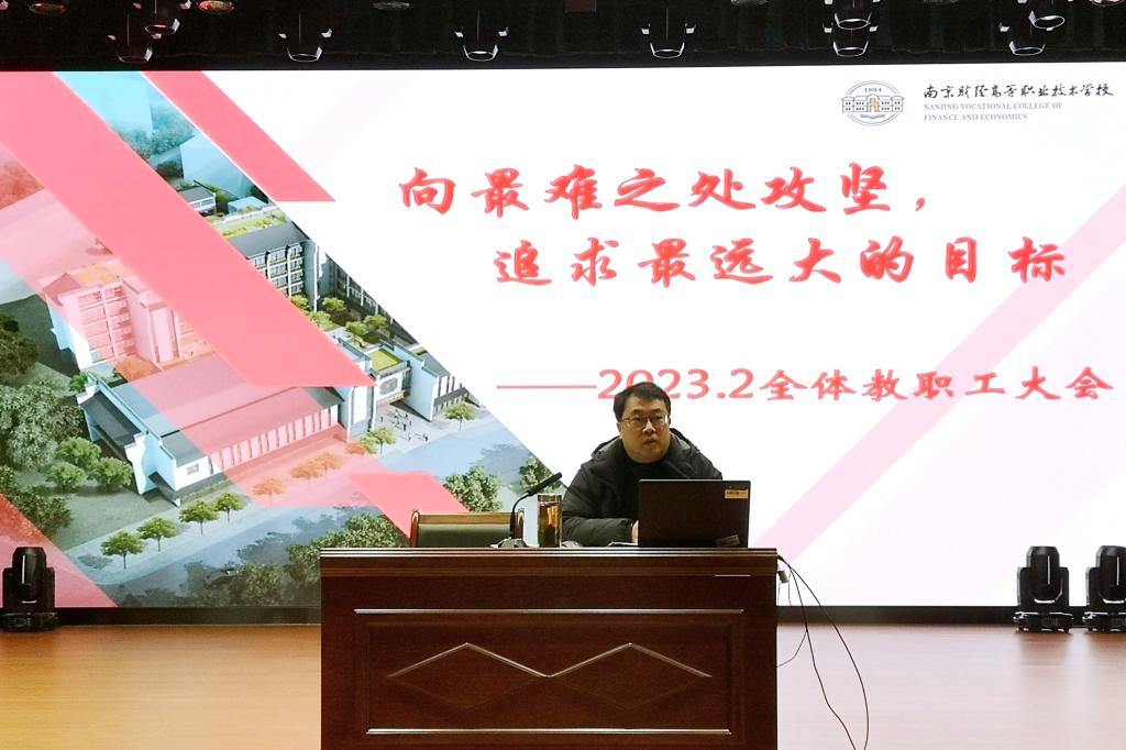 会议的开始,姚校长首先向全校教职工送上了节日的问候,传达了近期省市重要会议精神,指出“开年就是开工,开工就要实干,以新气象新作为推动高质量发展取得新成效”,希望全校教职工迅速进入工作状态。