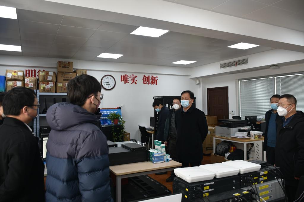 在网络组建、云计算实训场所,潘副局长勉励师生们:学校在信息类赛项上,具有传统优势,有过辉煌的历史,虽然近几年成绩有所波动,但是希望大家能够克服困难,砥砺前行,再创辉煌。