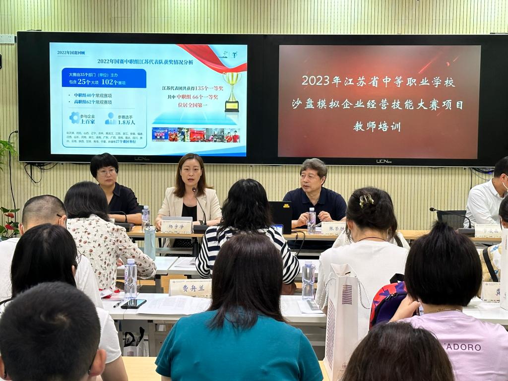 7月9日至18日,2023年江苏省中等职业学校沙盘模拟企业经营技能大赛项目教师培训班在我校顺利举行。江苏省职业院校技能大赛办公室主任张荣胜、江苏省职业院校技能大赛沙盘模拟企业经营项目专家组组长(南京财经大学物流管理学院院长)陶经辉、学校副校长杨宇净以及来自全省各地的30名教师学员共同出席了开班仪式。