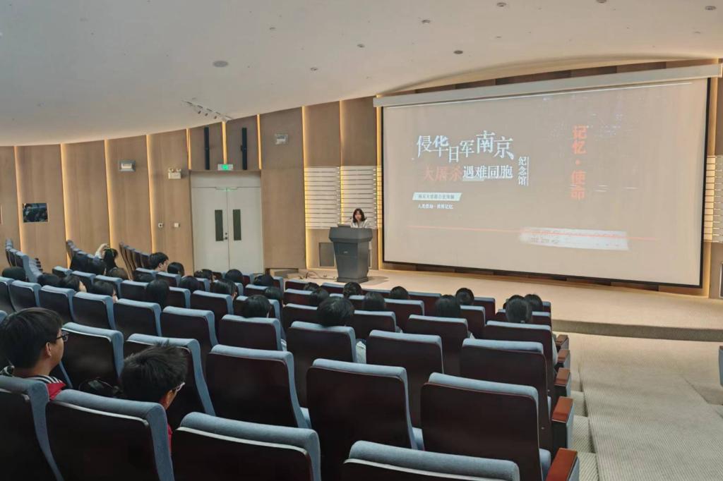 大家与南京大屠杀幸存者后代面对面交流。随后,大家聆听了一场关于《记忆·使命》主题的报告,报告从多方面对这段史实进行了讲述,让大家更加明确应坚定理想信念,铭记历史,不忘初心,珍爱和平。