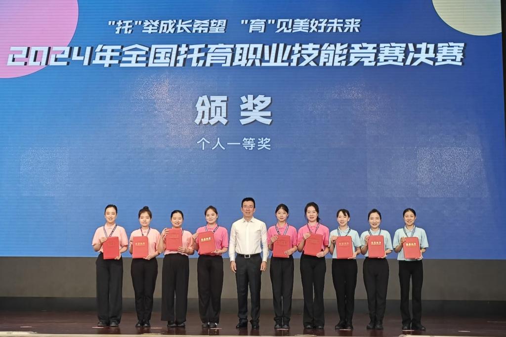 “托”举成长希望,“育”见美好未来。8月30日,由全国总工会女职工部、国家卫生健康委人口家庭司、全国妇联家庭和儿童工作部主办的2024年全国托育职业技能竞赛决赛在浙江宁波落幕。我校婴幼儿托育服务与管理专业学生陈旭婷凭借扎实的专业知识和出色的实践技能、深厚的实践经验、专业的实操技能获得个人一等奖的好成绩。