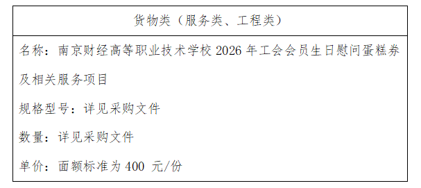 二、项目名称:南京财经高等职业技术学校2026年工会会员生日慰问蛋糕券及相关服务项目