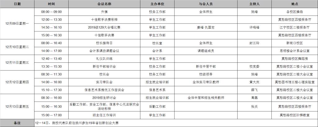 19-20学年第一学期第十五周工作安排