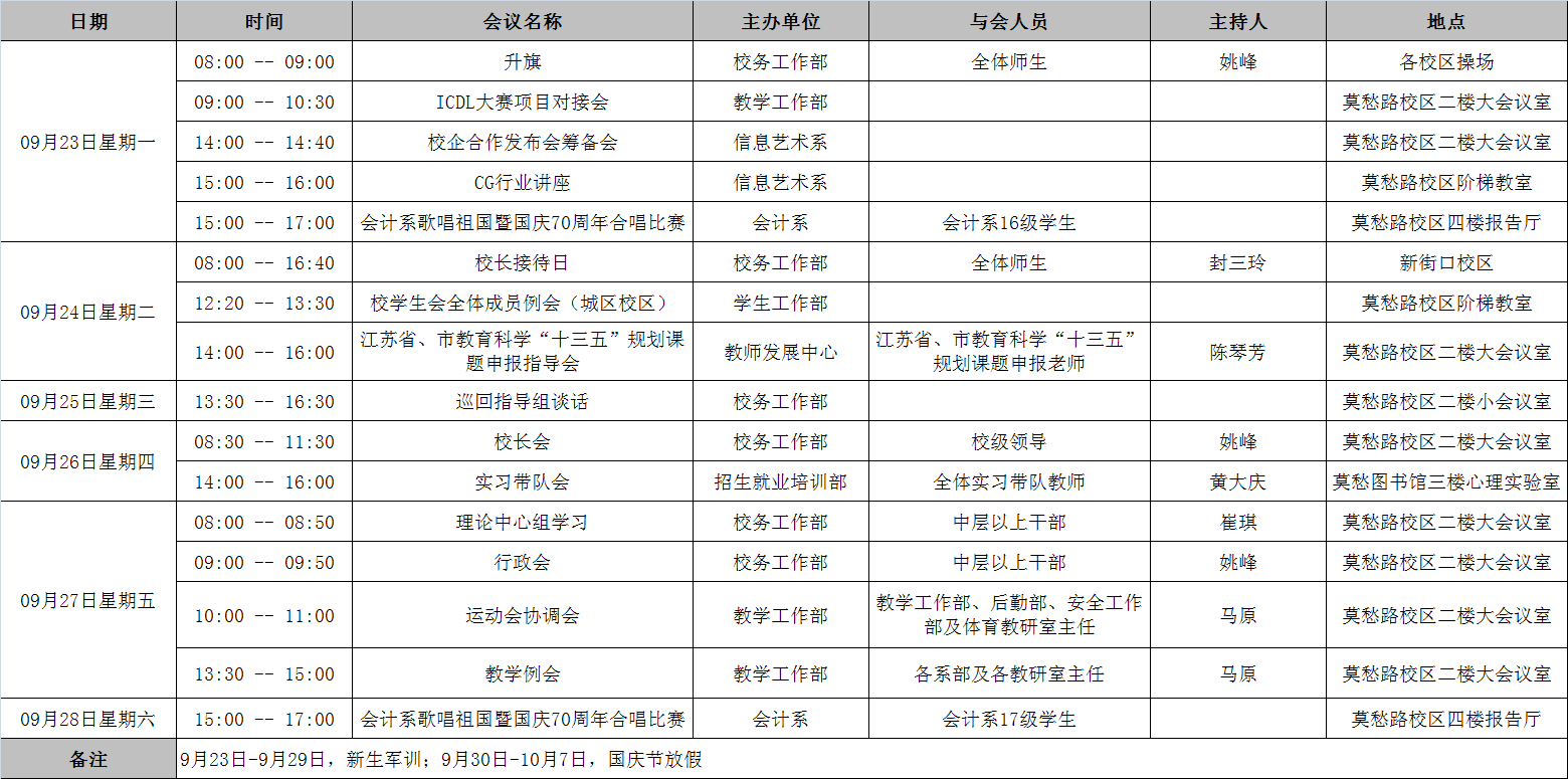 2019年9月23日至9月29日