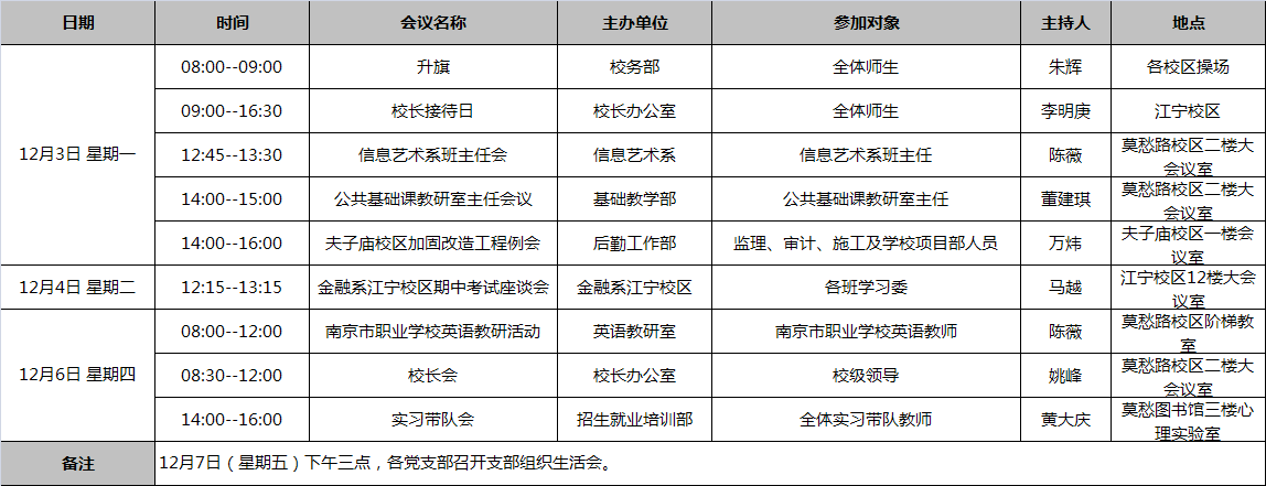 18-19学年第一学期第十四周工作安排