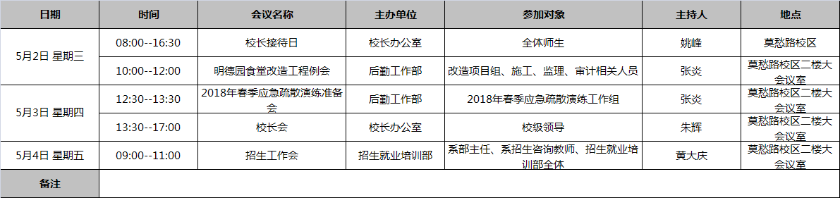 17-18学年第二学期第十周工作安排