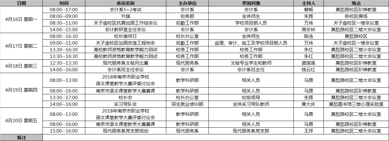 17-18学年第二学期第八周工作安排