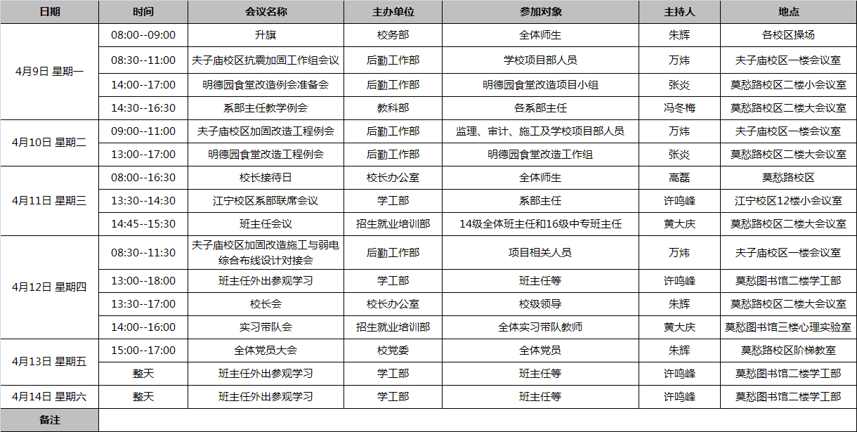 17-18学年第二学期第七周工作安排