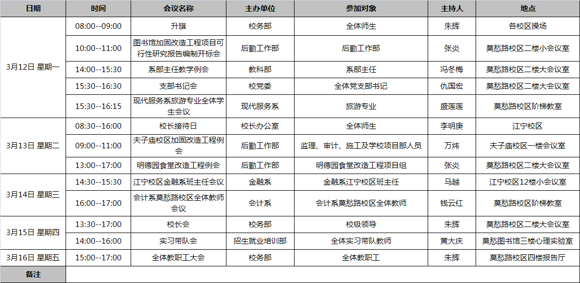 17-18学年第二学期第三周工作安排