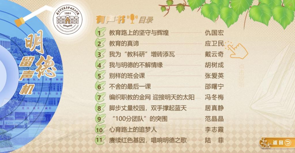 “明德”承载着南京财经高等职业技术学校深厚的历史底蕴与文化精华,更是每一位学子前行的精神灯塔。作为学校建校140周年的特别献礼,《明德留声机》有声书特邀校友代表,回溯与学校共度的难忘时光。有声书邀请学校教师代表深情讲述,广大校友传递祝福,共同见证并庆祝母校的蓬勃发展。
